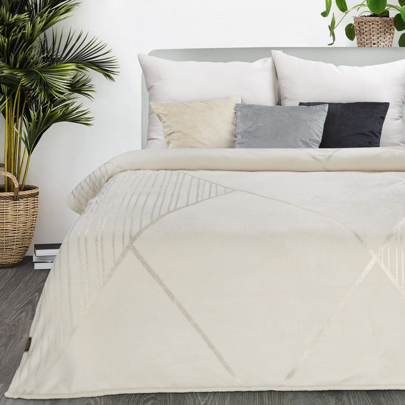 Koc Narzuta 150x200 z mikrofibry Ginko 3 Kremowy