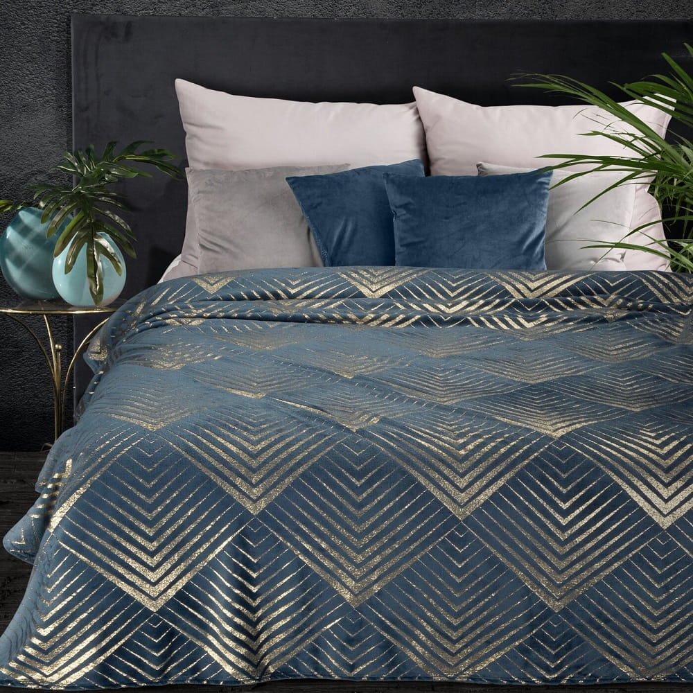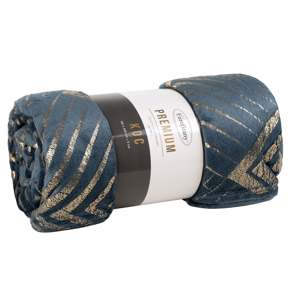 Bardzo miły i przyjemny kocyk w standardowym rozmiarze zdobiony nadrukiem wzór geometryczny. Idealnie sprawdzi się jako nakrycie łóżka, sofy lub do przykrycia w chłodne dni czy też noce. Może również pełnić rolę koca piknikowego, gdyż jest lekki i poręczny. Koc narzuta w pięknym i oryginalnym kolorze zdobiony nadrukiem w zawsze modnym złotym kolorze. Nowoczesny design pozwala na dopasowanie go do różnych aranżacji wnętrza. Przyjazny dla skóry, nie podrażnia i zachowuje swoje właściwości przez długi okres. Kolekcja Victoria składa się z wielu kolorów, spośród których każdy może wybrać coś dla siebie. Praktyczny pomysł na prezent na wiele okazji oraz bez okazji.
