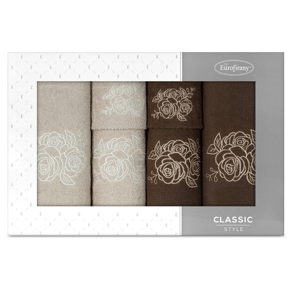 Komplet ręczników w pudełku 6 sztuk Rosalia Beż Brąz