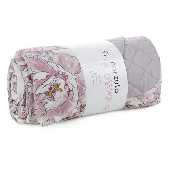 Narzuta 170x210 z kolekcji Flower wnosi do wnętrza letnią świeżość. Druga strona w gładkim odcieniu tworzy niezapomniany kontrast kolorystyczny. Intensywny wzór bogatych roślin i kwiatów wyróżni się na tle wnętrza, tworząc intrygującą kompozycję, która znakomicie sprawdzi się w romantycznych sypialniach. Rośliny wnoszą do pomieszczeń wiele radości oraz estetycznej harmonii. Warstwa elastycznego wypełnienia między dwoma tkaninami, sprawia, że narzuta miękko i estetycznie otula łóżko. Nowoczesna, bezszwowa metoda pikowania, zwiększa wytrzymałość materiału, zapewniając narzucie dłuższą trwałość. Urządź komfortowo swoje mieszkanie i odpoczywaj w pięknych pomieszczeniach. Wybieraj spośród dostępnych składników kolekcji i ciesz się wyjątkową oprawą sypialni.