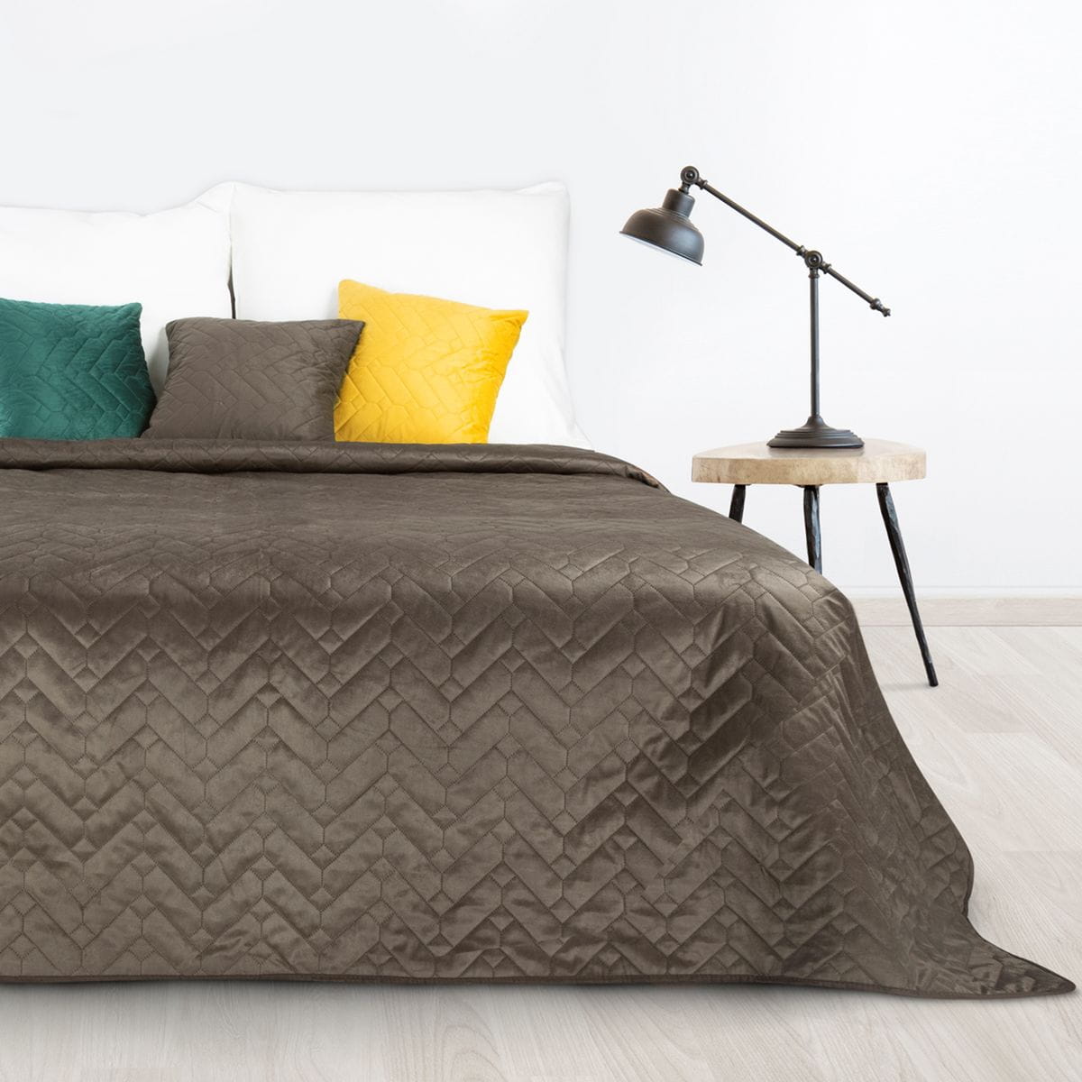 Narzuta Luiz 170x210 Brąz to styl i elegancja. Projekt w nowoczesnym stylu z miękkiego i miłego w dotyku materiału zdobionego geometrycznym pikowaniem. Wierzchnia strona narzuty wykonana jest z miękkiego welurowego materiału, natomiast spód, z gładkiej matowej mikrofibry, dzięki której narzuta nie zsuwa się z pościeli. Idealna na prezent.