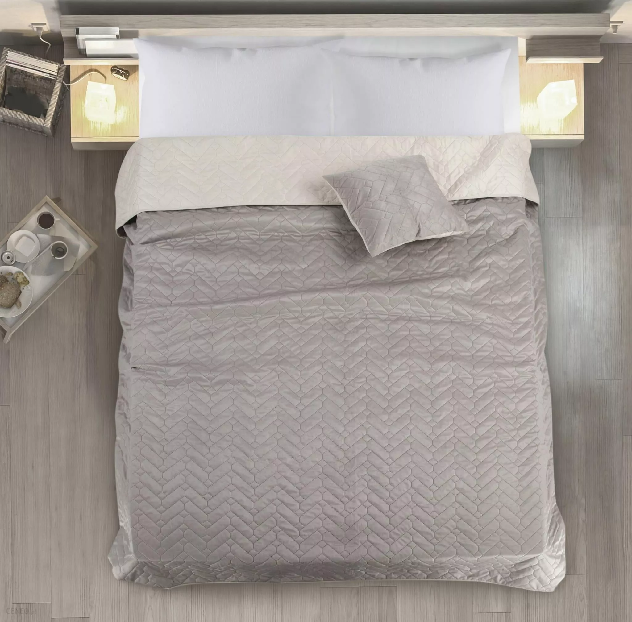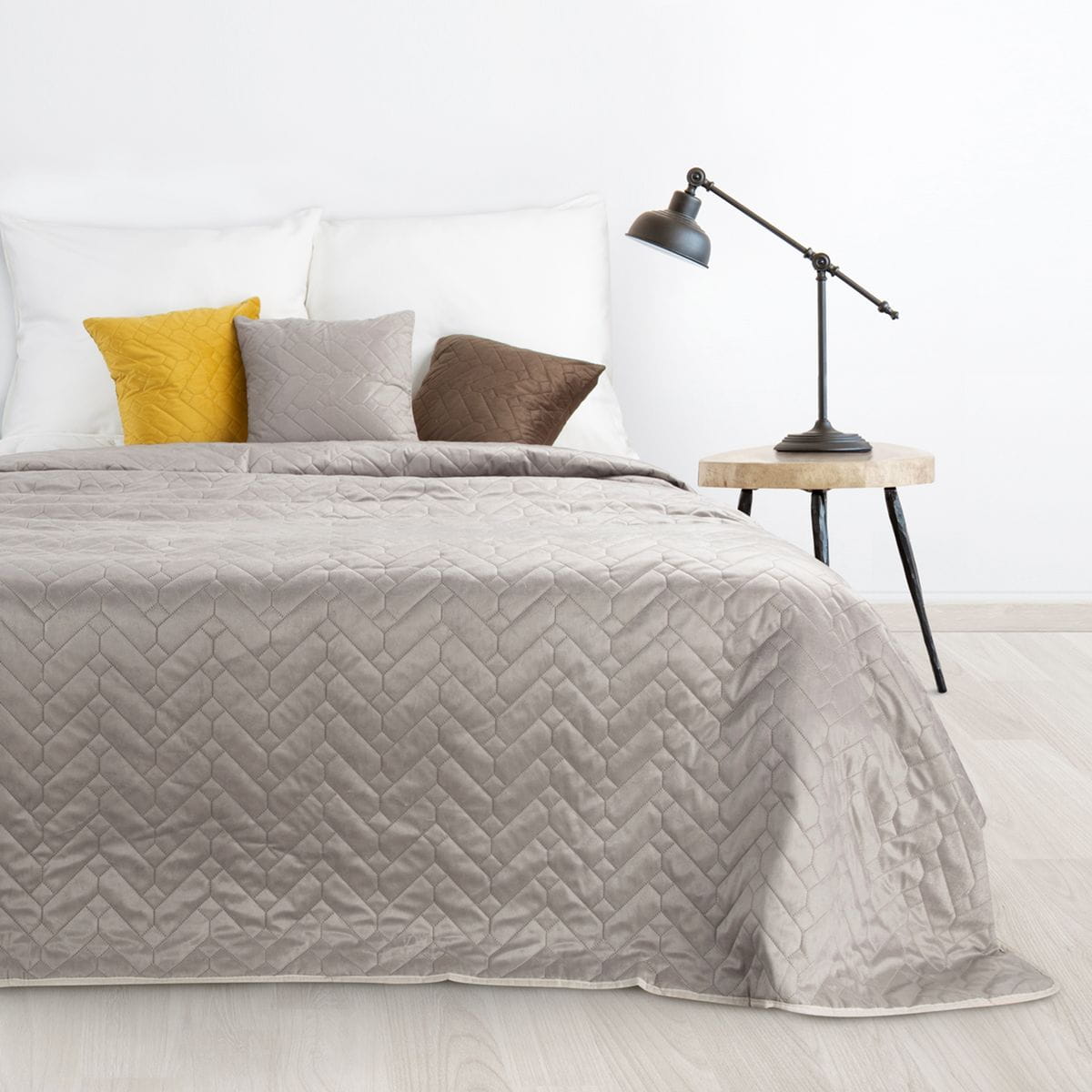 Narzuta Luiz 2 220x240 kolor beżowo-kremowa to nowoczesny i stylowy produkt z miłego w dotyku zdobionego geometrycznym pikowaniem welwetu. Wierzchnia strona narzuty wykonana jest z miękkiego welurowego materiału, natomiast spód, z gładkiej matowej mikrofibry, dzięki której narzuta nie zsuwa się z pościeli. Elegancka narzuta Luiz dodaje charakteru i kolorytu każdej sypialni.