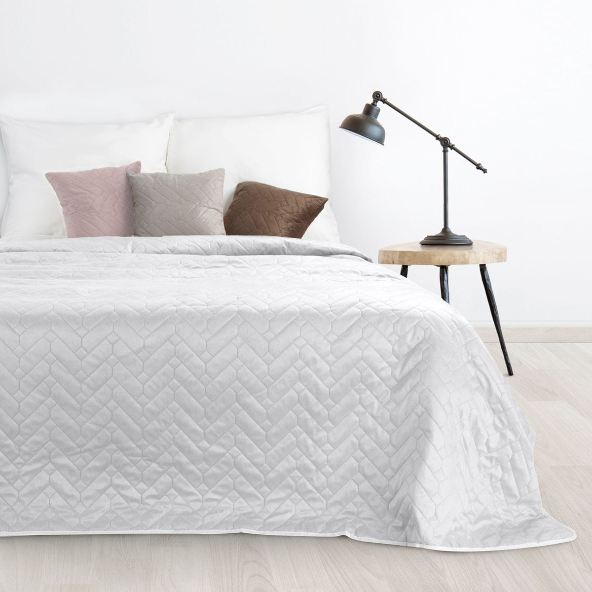 Narzuta Luiz 220x240 w modnym ponadczasowym srebrnym kolorze. Produkt wykonany z miłego w dotyku zdobionego geometrycznym pikowaniem welwetu. Wierzchnia strona narzuty wykonana jest z miękkiego materiału, natomiast spód, z gładkiej matowej mikrofibry, dzięki której narzuta nie zsuwa się z pościeli. Elegancka narzuta Luiz dodaje charakteru i kolorytu każdej sypialni. Może być trafionym prezentem.