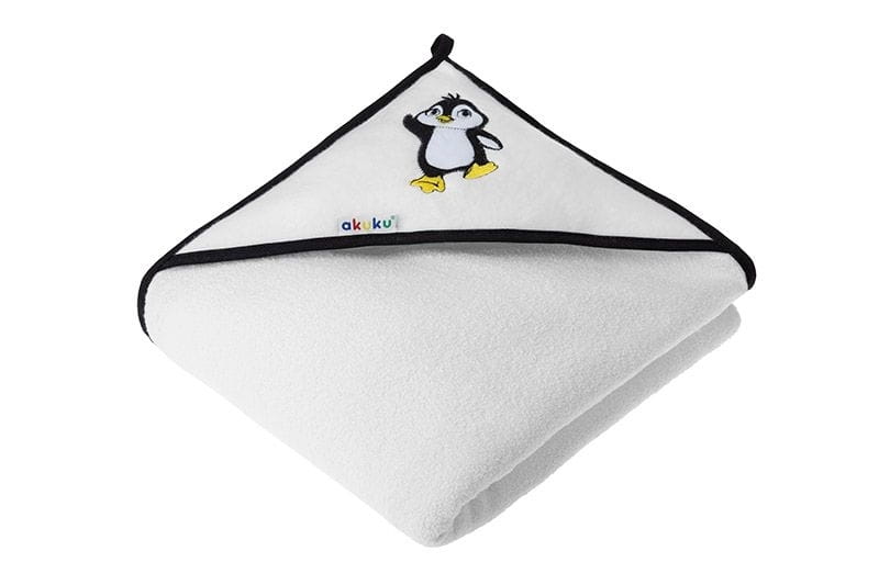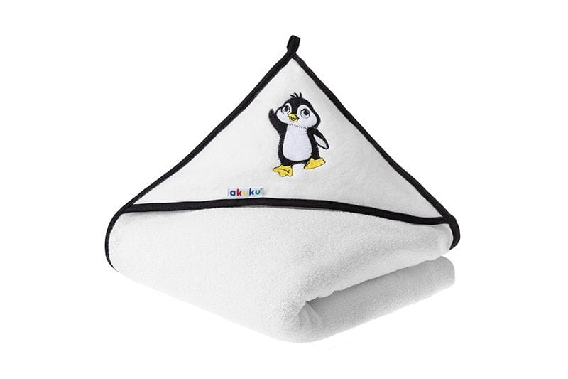 Okrycie Kąpielowe z Kapturkiem 100x100 Pingwin Biały to praktyczny i delikatny produkt niezastąpiony już od pierwszej kąpieli. Wykonane z wysokiej jakości miękkiej 100% bawełny typu frotte. Znakomicie wchłania wodę i stanowi skuteczną ochronę przed zimnem dla delikatnej skóry dziecka. Luźny fason nie ogranicza i nie krępuje ruchów wykąpanego maluszka, a wszyty kapturek chroni mokrą głowę dziecka przed oziębieniem.