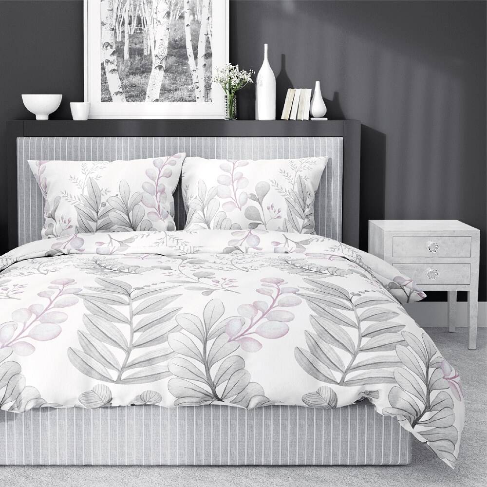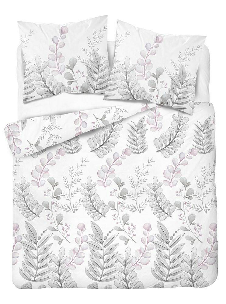 Pościel Bawełna Satynowa HS 160x200 Liście Biel 3987-B