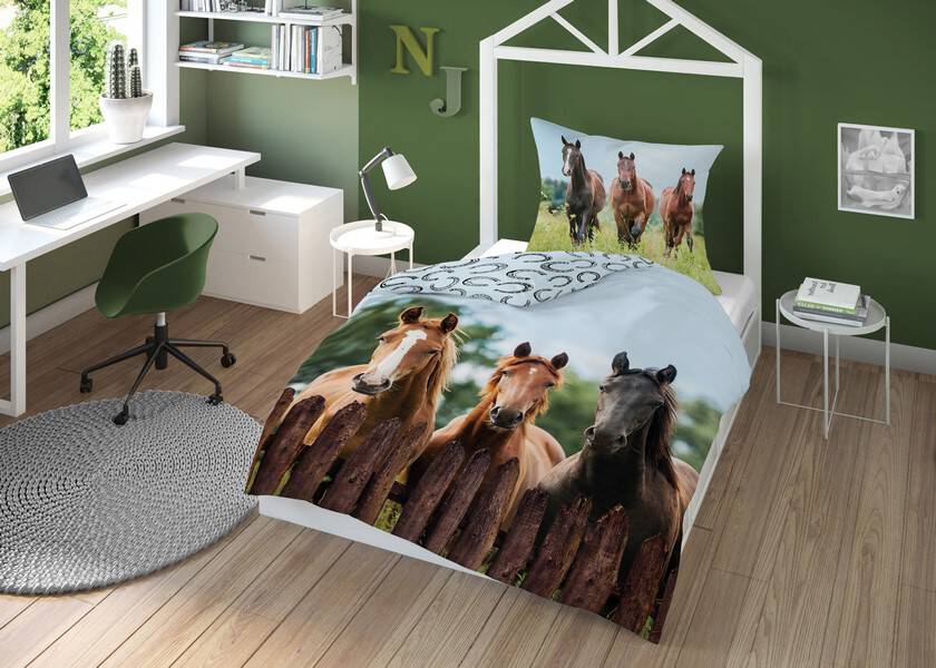 Pościel Bawełniana Dziecięca 140x200 Trzy Konie
