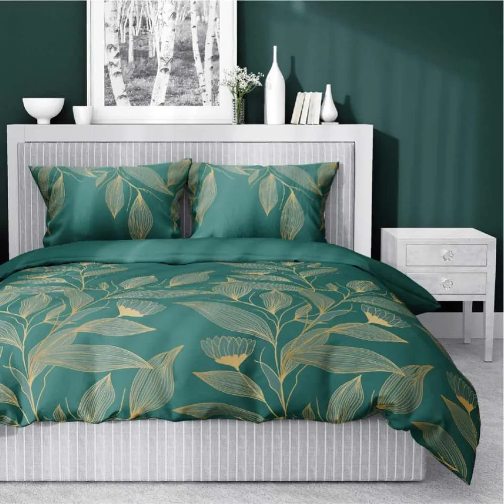 Pościel z bawełny satynowej 160x200 Gałązki Ciemna Zieleń