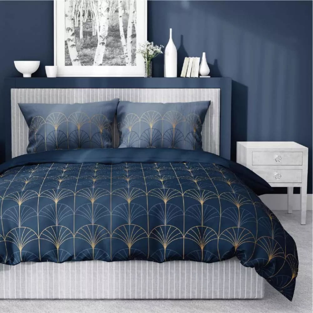 Pościel z satyny bawełnianej 160x200 Granatowa Ornament