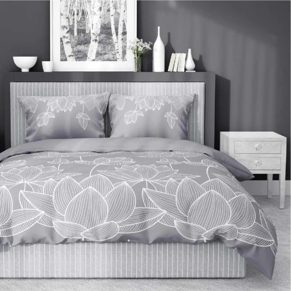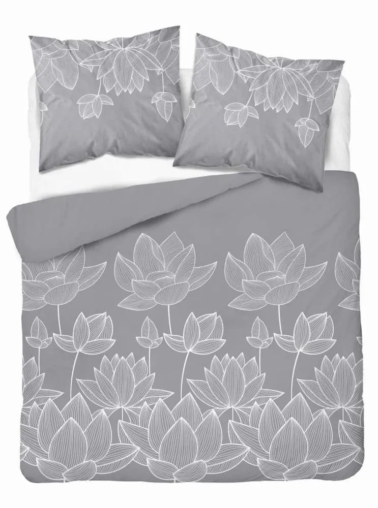 Pościel z satyny bawełnianej 220x200 Lotos Kwiat Szary