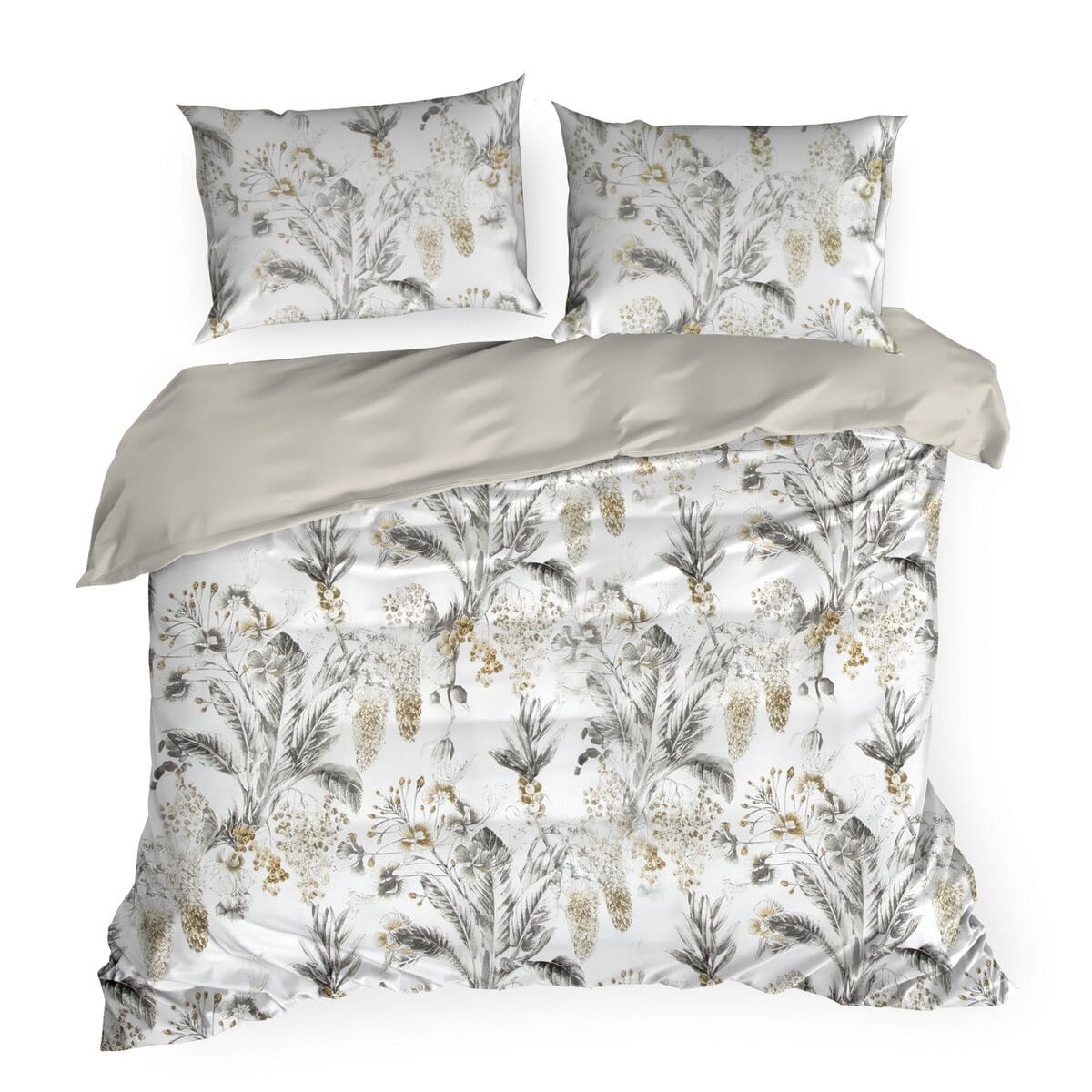 Pościel z satyny bawełnianej 160x200 Kwiaty Szare