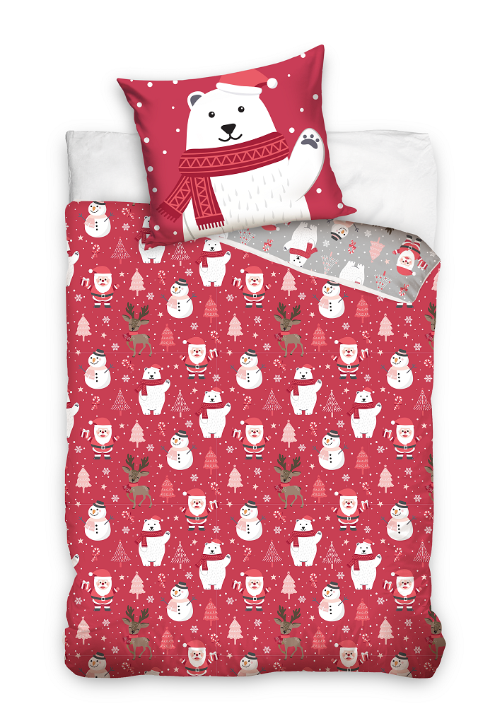 Pościel Świąteczna Bawełniana 140x200 + 60x70 Misie 5029