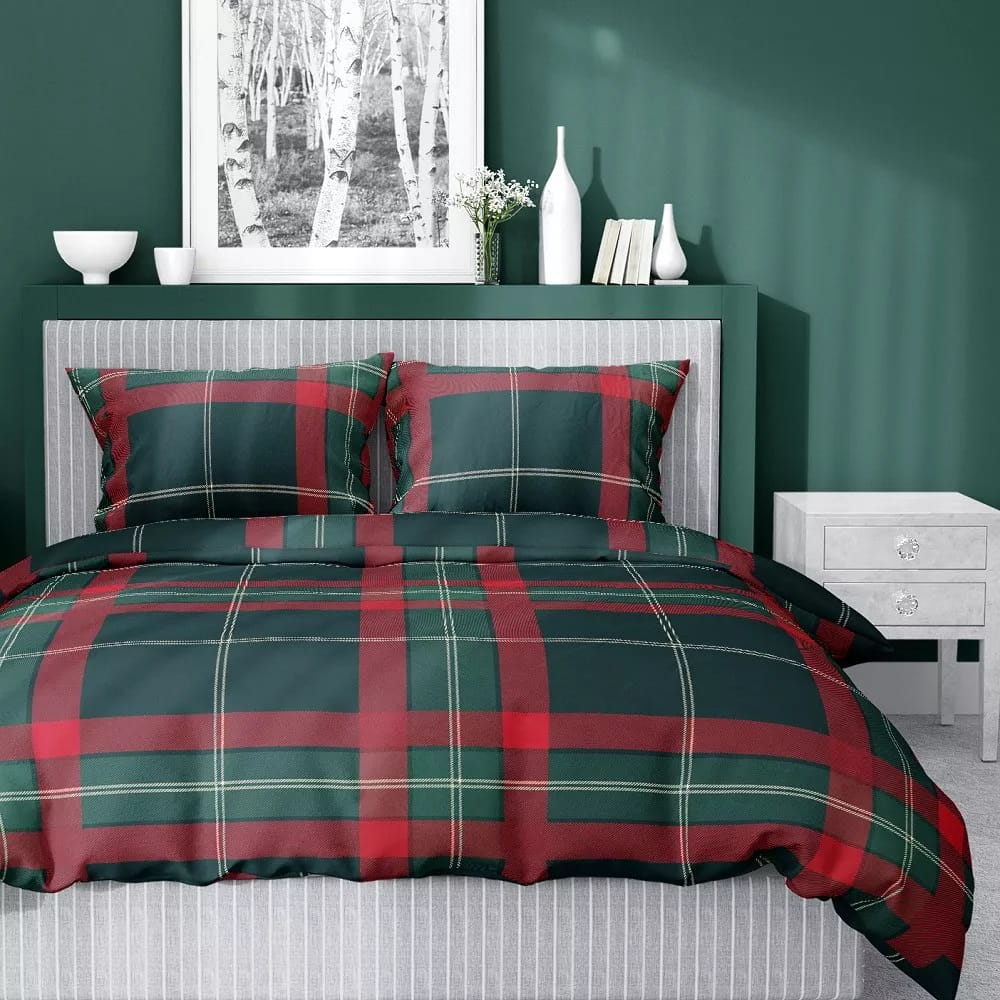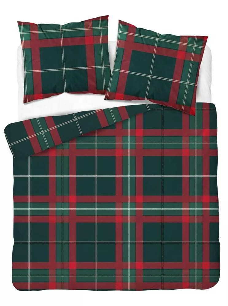 Pościel Świąteczna Satyna Bawełniana 160x200 Kratka Zielona Czerwona 5229 A