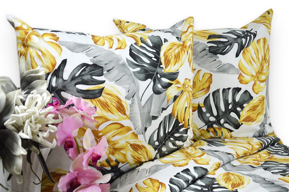 Pościel z Kory 100% Bawełna 160x200 Monstera Złota 3159