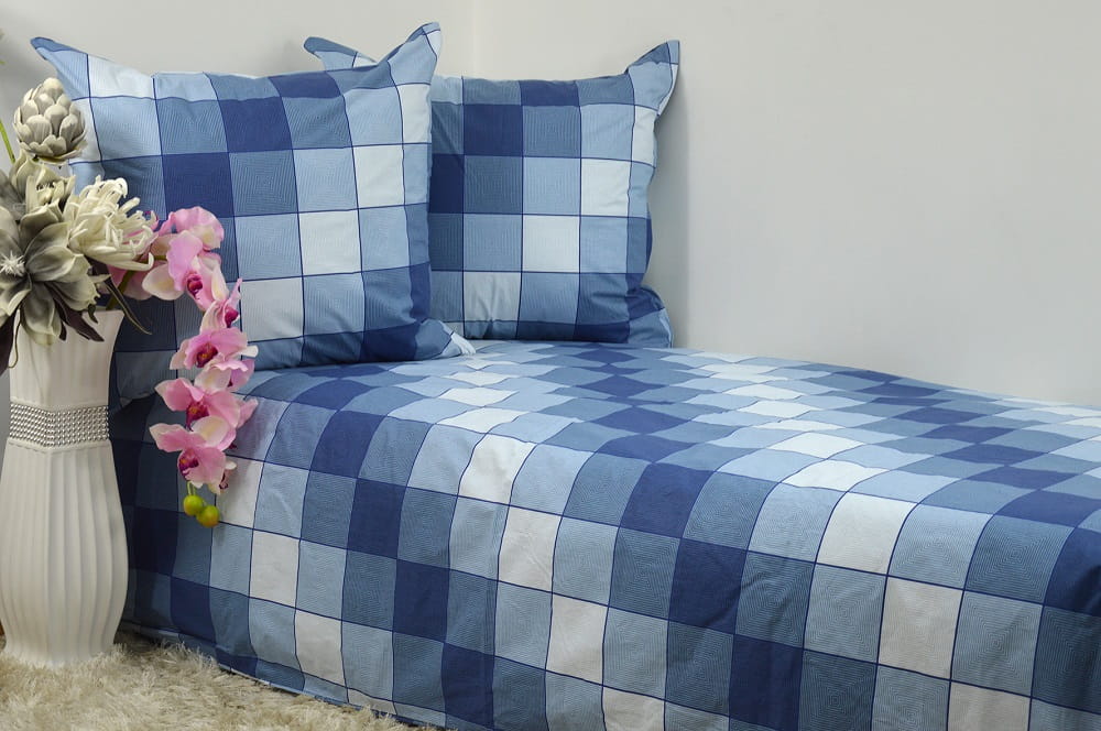 Pościel z kory 100% bawełna 200x220 Kratka Niebieska Granatowa