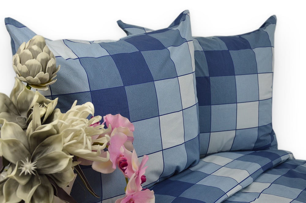 Pościel z Kory 200x220 Kratka Niebieska 3045
