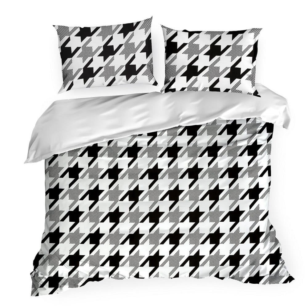 Pościel satynowa 220x200 Geometryczna Biała Czarna