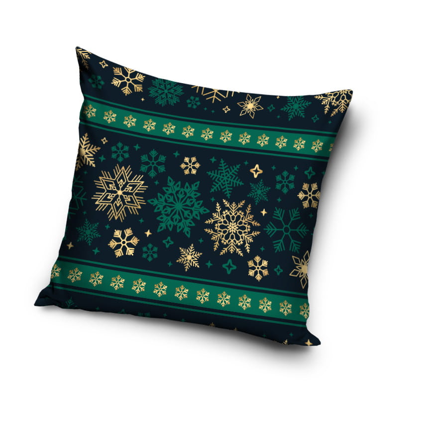 Poszewka świąteczna na poduszkę 40x40 Śnieżynki Zieleń 7040